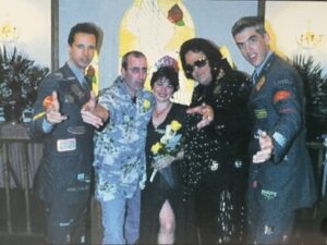 The documentary took over a year to shoot and edit. The actual suits are now part of the Museum of Fine Arts Houston collection. The journey is also immortalized in a book, where there’s a photo of Merideth (with Mike & Jack as her “bridesmaids”) renewing her wedding vows by an Elvis minister when they were shooting in Las Vegas.